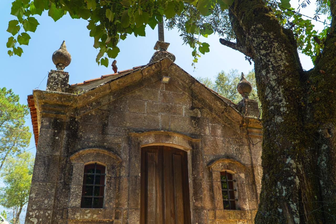 O altar da celebração, colocado aquando da reconstrução da capela-mor, é constituído por peças provenientes de dois altares de Renascença italiana adquiridos numa igreja do concelho de Guimarães. A frontaria da atual capela apresenta estilo D. João V. Destaca-se ainda o cruzeiro, datado igualmente do século XVIII, não havendo outras informações relevantes sobre o altar-mor, tetos, ou restante corpo da igreja.