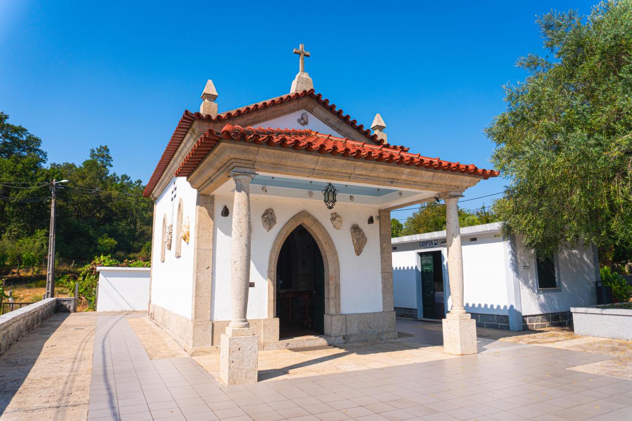 A cripta apresenta revestimento em painéis de azulejo e possui um altar cuja frontal é constituída por um bloco de quartzo cristalizado, considerado peça única no seu género.