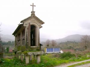 O espigueiro ergue-se junto ao caminho e a uma casa de construção recente no interior do lugar. Em fundo enquadram o horizonte as cumeadas da Serra Amarela. Muito próximo ergue-se um outro espigueiro de menores dimensões e um pequeno canastro.